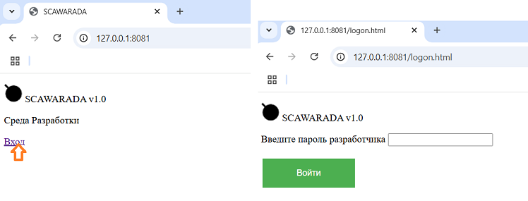 Если вы ранее задали пароль разработчика - введите пароль. Если вы создали новый проект или ещё не задали пароль разработчика - войдите с пустым паролем.
